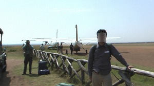 空港までは、いつもサファリドライブのときドライバーを務めてくれた方に連れて行ってもらいました。別の車に乗っていたのか、ムパタの日本人スタッフ二人も空港に来ていました。 飛行機を待ちますが、飛行機の出発予定時刻になっても、飛行機がなかなか来ません。